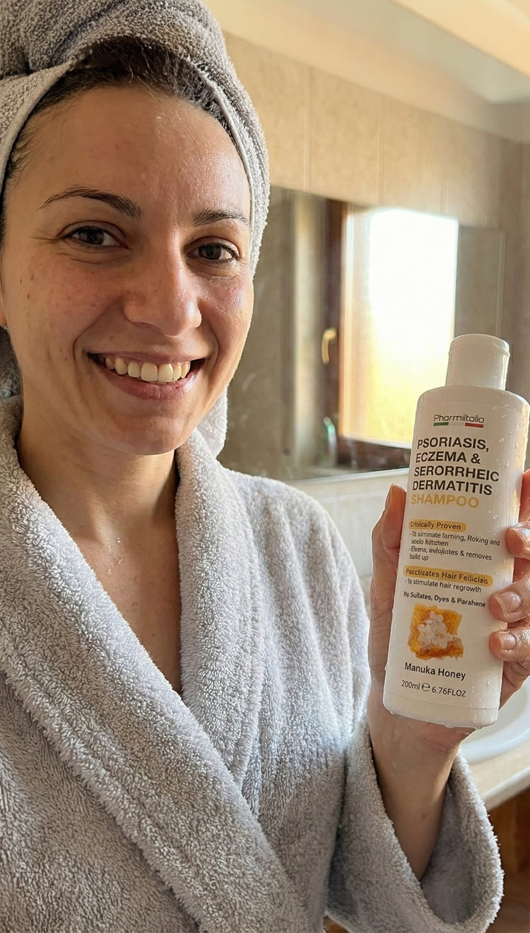 Dealing with persistent flakes, itching, or scalp irritation? Pharmlitalia’s Psoriasis Shampoo is designed to gently cleanse while supporting relief from psoriasis, eczema, folliculitis, and seborrheic dermatitis.