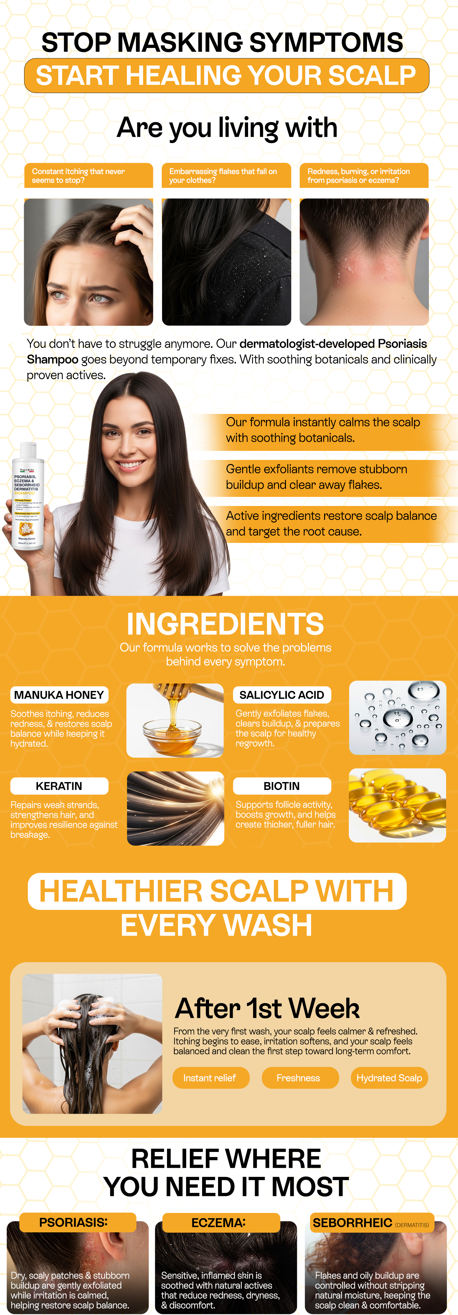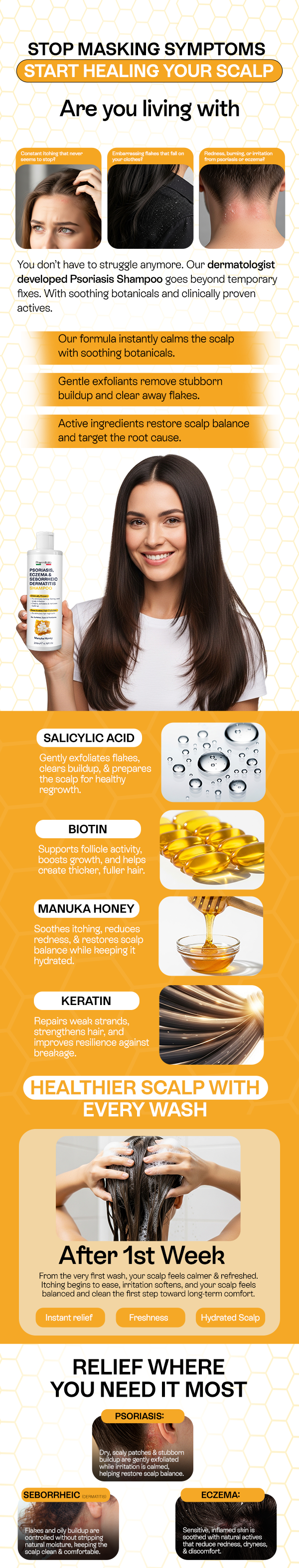 Psoriasis Shampoo for Dry, Itchy & Flaky Scalp | Eczema, Folliculitis & Seborrheic Dermatitis Care | Manuka Honey – 200ml